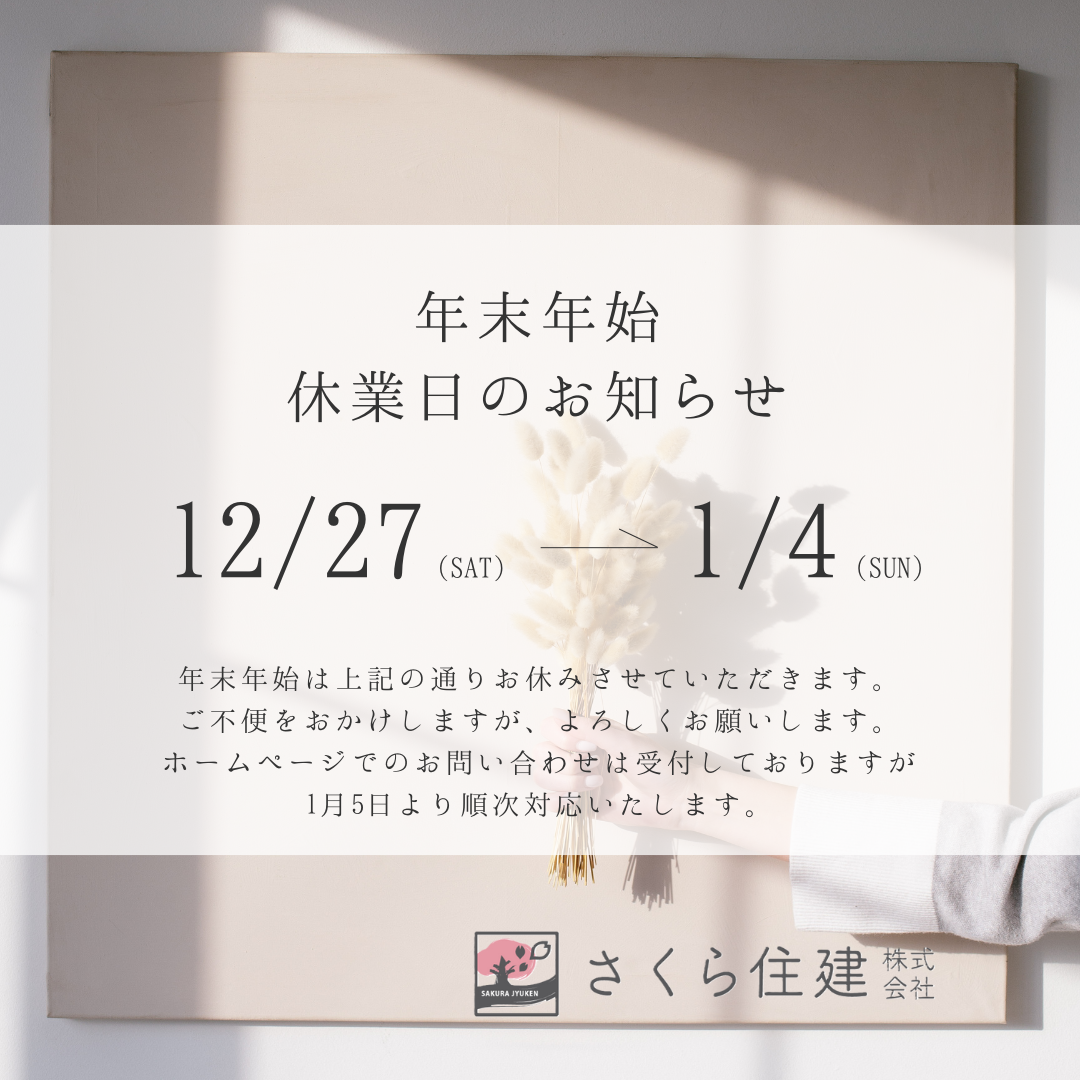 年末年始休業期間:2025年12月27日(土)~2026年1月4日(日)