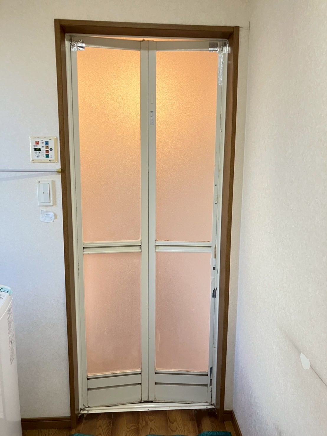 ホームページをご覧になったお客様より、浴室中折れドア交換のご依頼をいただきました。