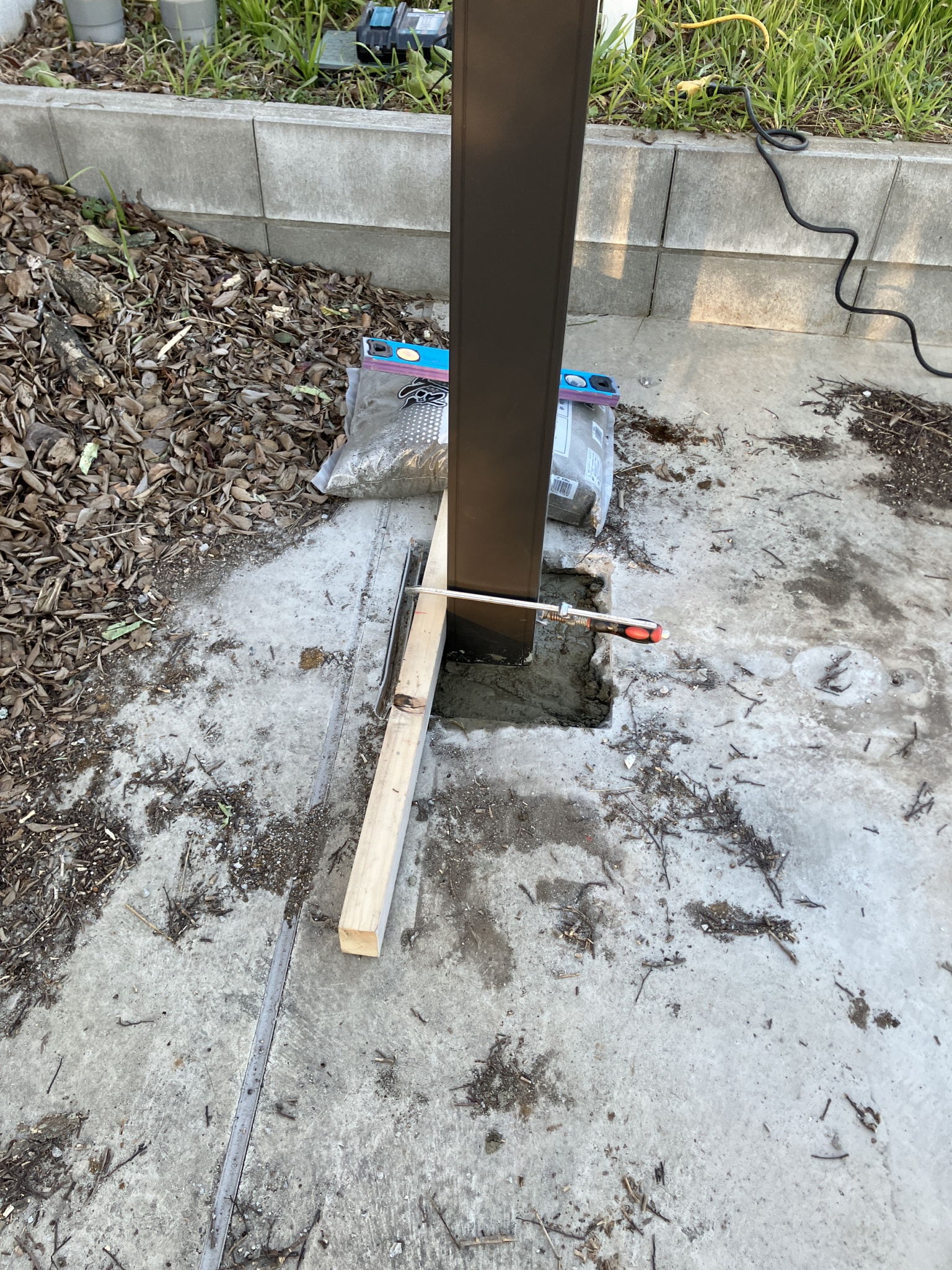 施工では、柱まわりのカッター入れやコンクリートの斫り・撤去を行い、既存の状況に合わせながら丁寧に基礎を施工いたしました。